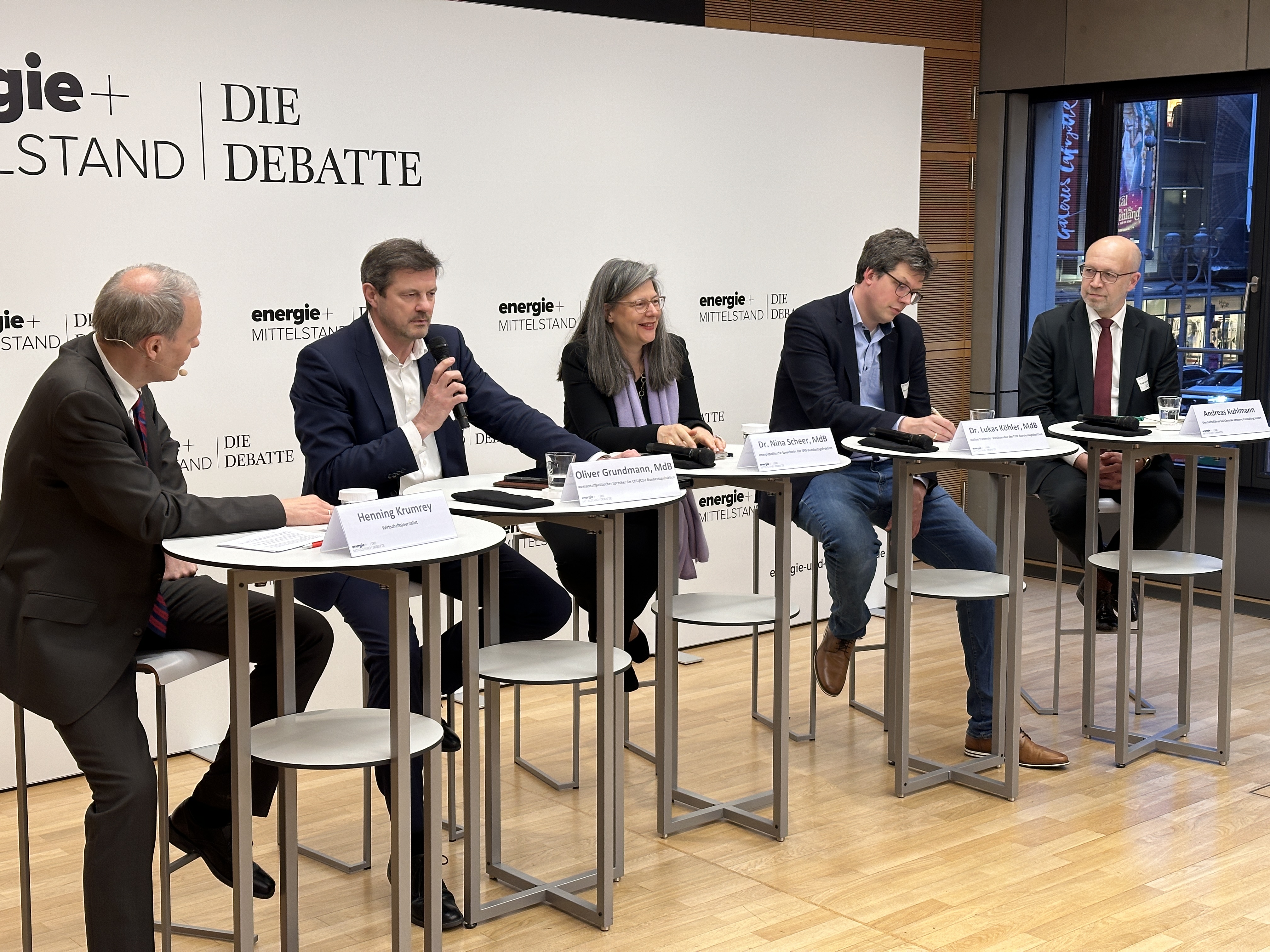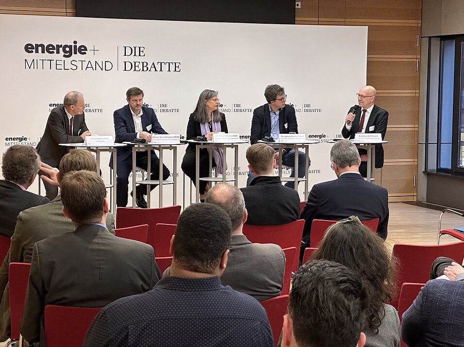 Im Berliner dbb Forum diskutierten am Mittwoch, den 20.03.2024, in der dritten Ausgabe der energie+Mittelstand | DIE DEBATTE unter Moderation von Henning Krumrey Vertreter aus Politik, Wirtschaft und Wissenschaft das Thema: